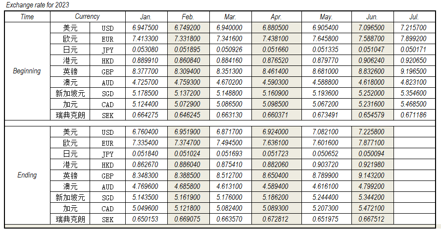 2023年6月外匯匯率,來(lái)源中國(guó)人民銀行供參考。