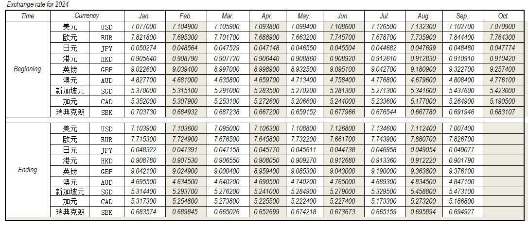 2024年9月外匯匯率,來源中國人民銀行供參考。